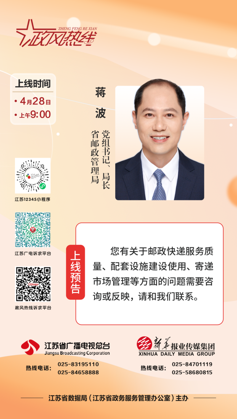 【预告】省邮政管理局将走进政风热线