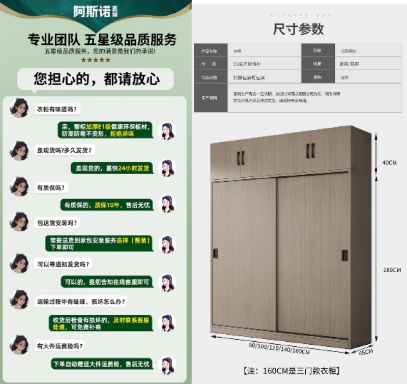 喻先生告诉记者,3月初,他在淘宝平台上的“阿斯诺家具店铺”购买了一款木质板材的衣柜,花费数百元。商家宣称确保质量,密度板主板厚度1.2厘米左右,背板是纤维板,厚度在0.3厘米左右。