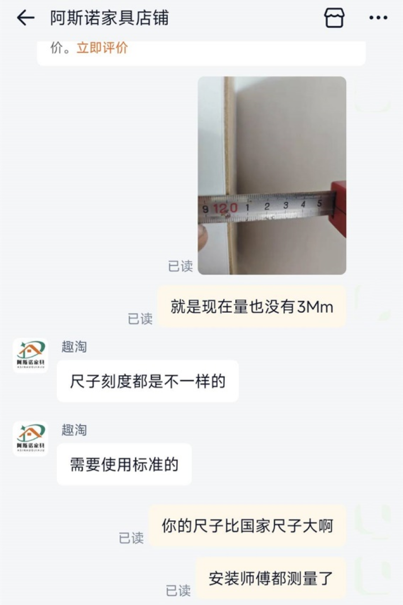 网购衣柜板材宣称0.3厘米实际“缩水”一半 商家:尺子的刻度不一样