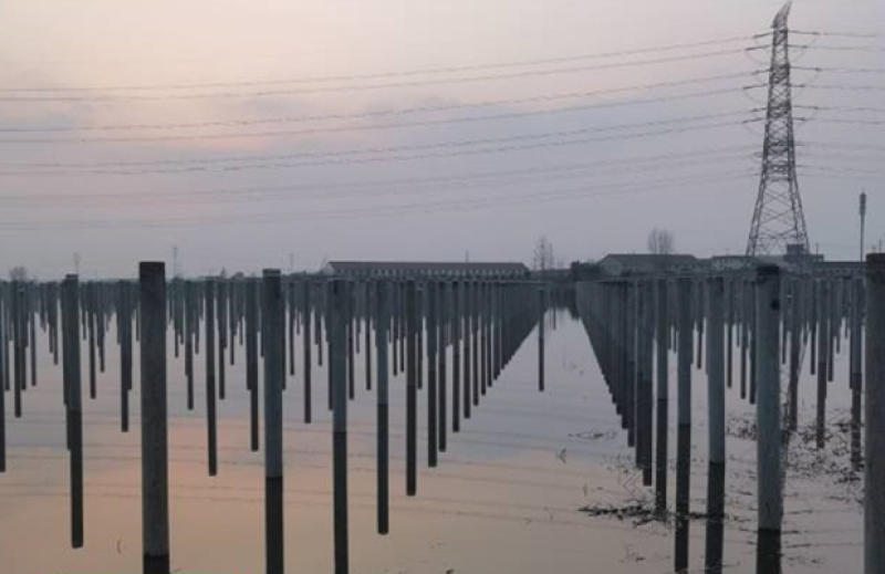 据了解,龙山村的渔光互补项目由两部分构成:渔业养殖由镇江龙山农业开发有限公司负责,自2013年起便已启动实施;光伏发电由一家新能源公司承建,打桩阶段已经完成,待支架安装后,铺设光伏板即可投入发电。