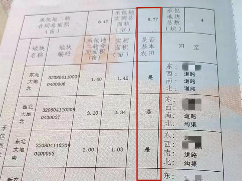 吴先生提供的农村土地承包经营权证上显示,他流转出去的土地是基本农田。