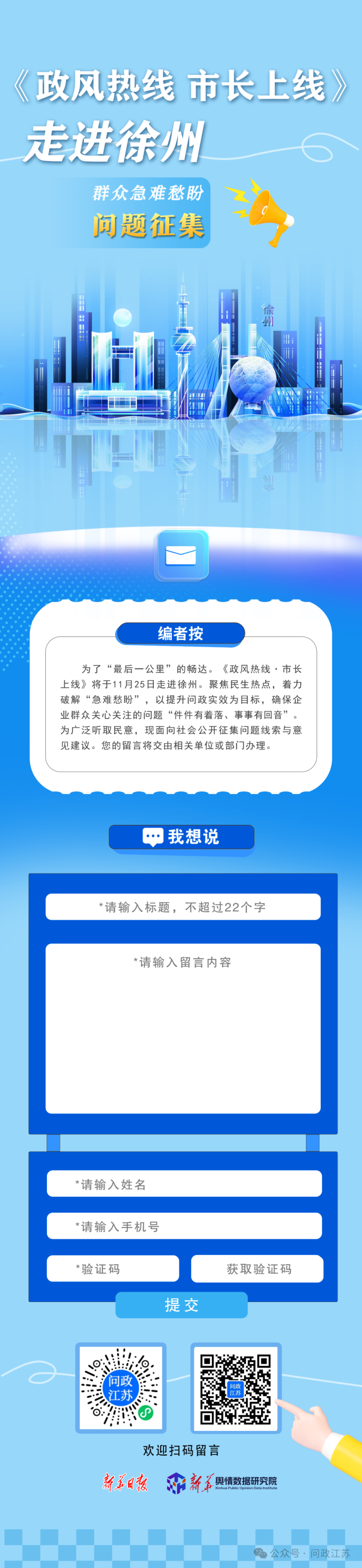 11月25日《政风热线·市长上线》走进徐州,现公开征集您的留言啦!